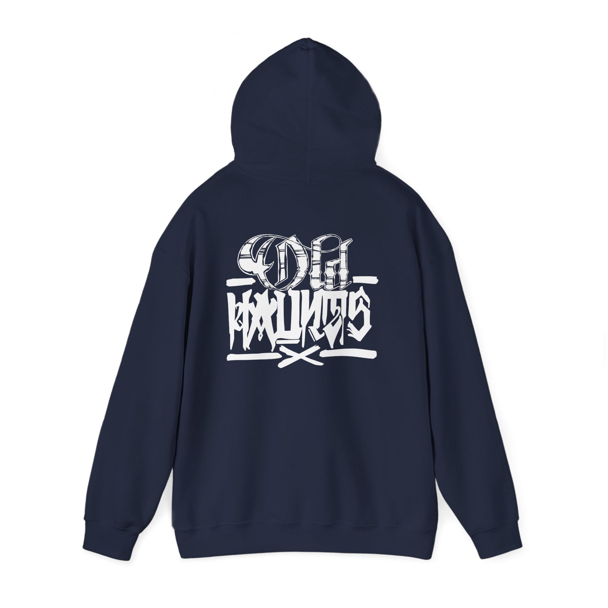 This black hoodie carries a moody, offbeat energy — soft, warm, and heavy enough to feel like a small refuge on cold days. Front and back prints use bold white lettering and distressed, hand-drawn elements that read “DEAD INSIDE” (with a quieter subline) and a stylized back graphic that feels like streetwise, inked graffiti. Wear it when you want comfort without losing your edge: it layers easily, hides well in late-night city light, and reads like a private joke you share with fellow night owls and alternative types. The kangaroo pocket and double-lined hood make it practical; the tactile, thick fabric makes it comforting. This hoodie lives in the same space as dim coffee shops, late-shift drives, underground shows, and quiet apartment evenings — a wearable expression of sardonic humor and cozy isolation.